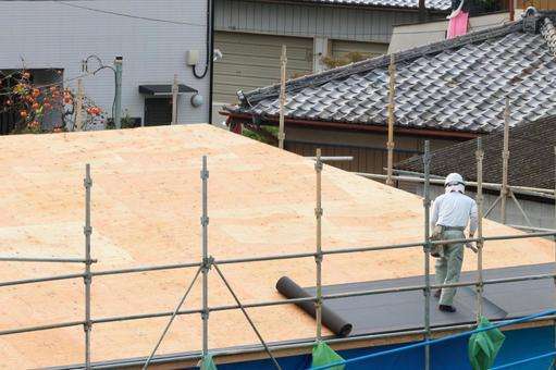 古い屋根材の上に、防水効果を高めるための防水シートを敷きます。このシートが二重防水の役割を果たします。